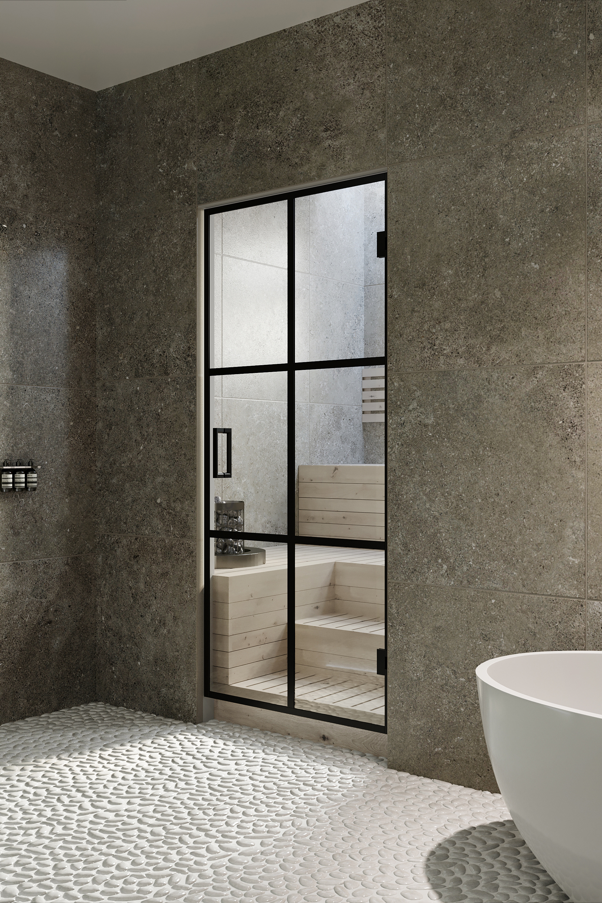 Bläk series sauna products have a modern design in an industrial style.