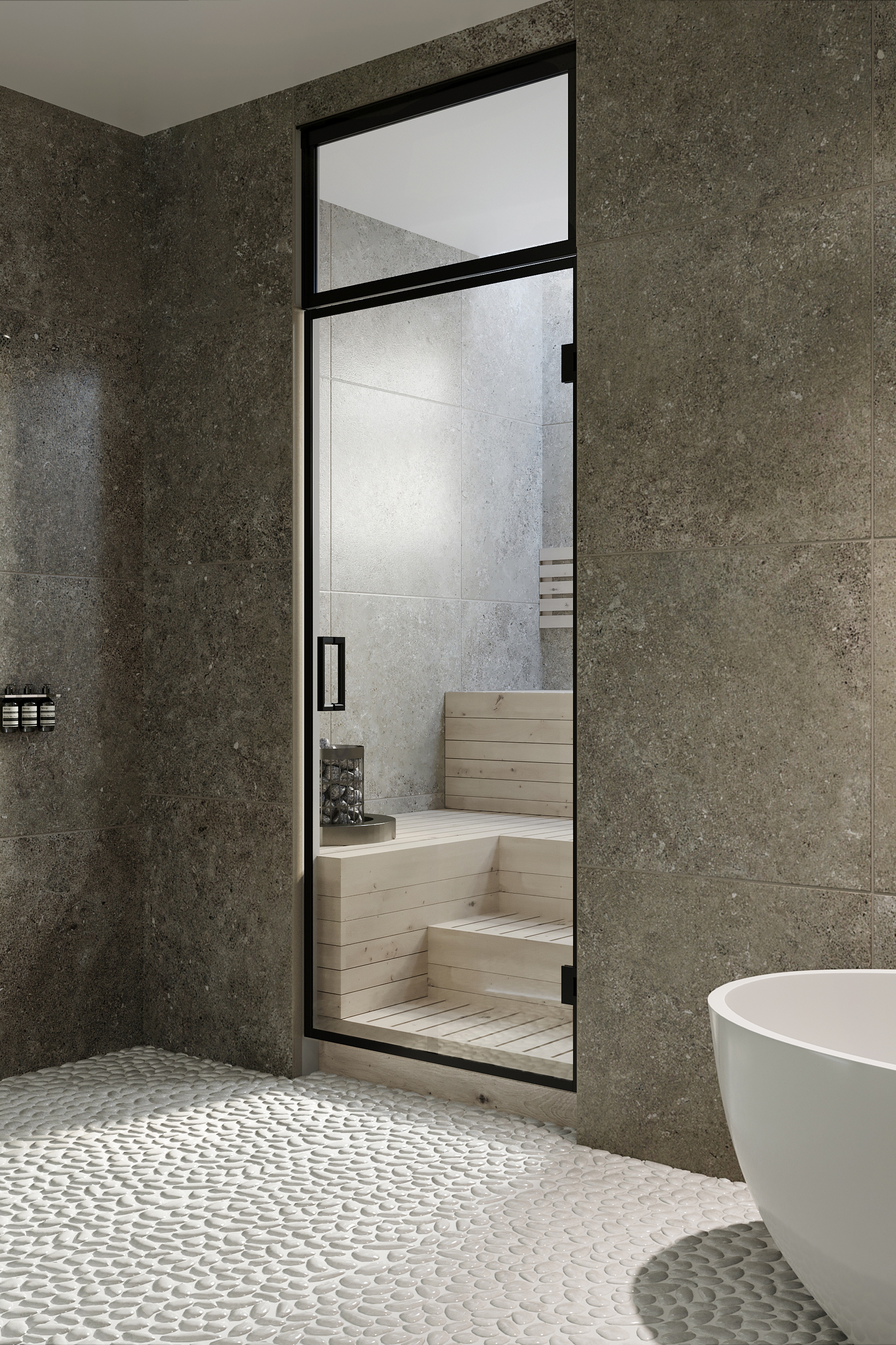 The hinges of the glass door are mounted directly to the building wall. Installation guide