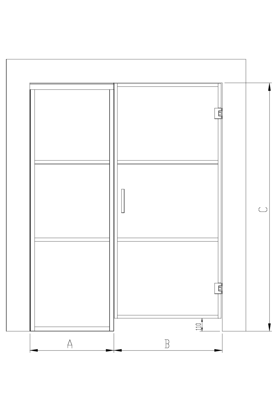 Sauna doors are always made to measure. When selecting the size of the door and the upper panel, the width is the width of the installation opening and the height is the height of the panel pane. When measuring the height of the installation opening of the door, a 5mm reserve is automatically left at the top edge of the panel and a 110mm reserve is left at the bottom edge. When selecting the side panels, the width and the height are the width and the height of the installation opening. Installation and adjustment ranges are included automatically in the dimensioning of the panel panes of the side panels. If the size of the door exceeds 1.7m2 an additional hinge is necessary to provide additional support.