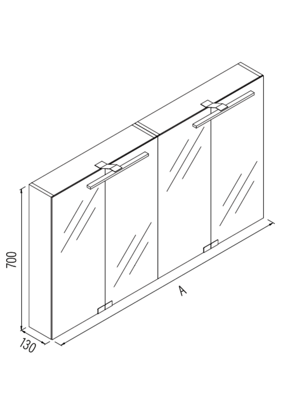Product consists of two mirror cabinets both with two doors which are installed next to each other.