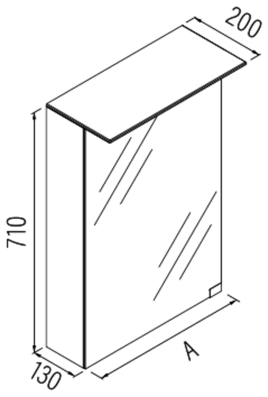 Mirror cabinet has a hinged door mirror (mirros on both sides) but also sides of the cabinet are coated with mirrors thus the model can be chosen despite the color of the vanity unit.