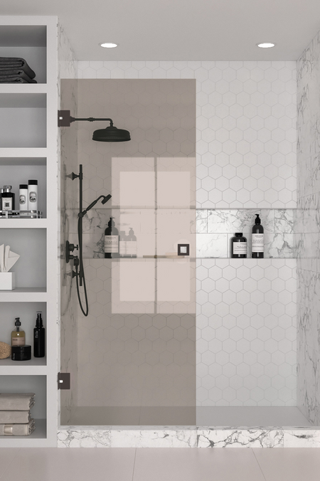Shower enclosure with a fixed wall and folding door - Tresor Shower shelf