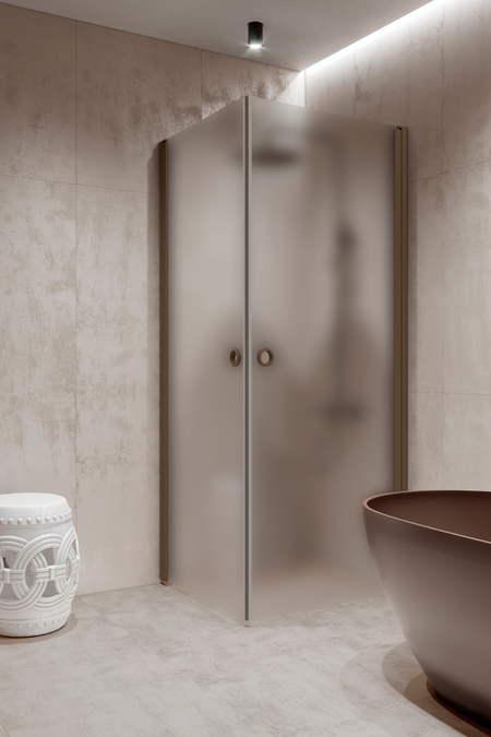Curved shower enclosure with a folding door and a hinged door with a fixed part - Vetro 540 (511x512)