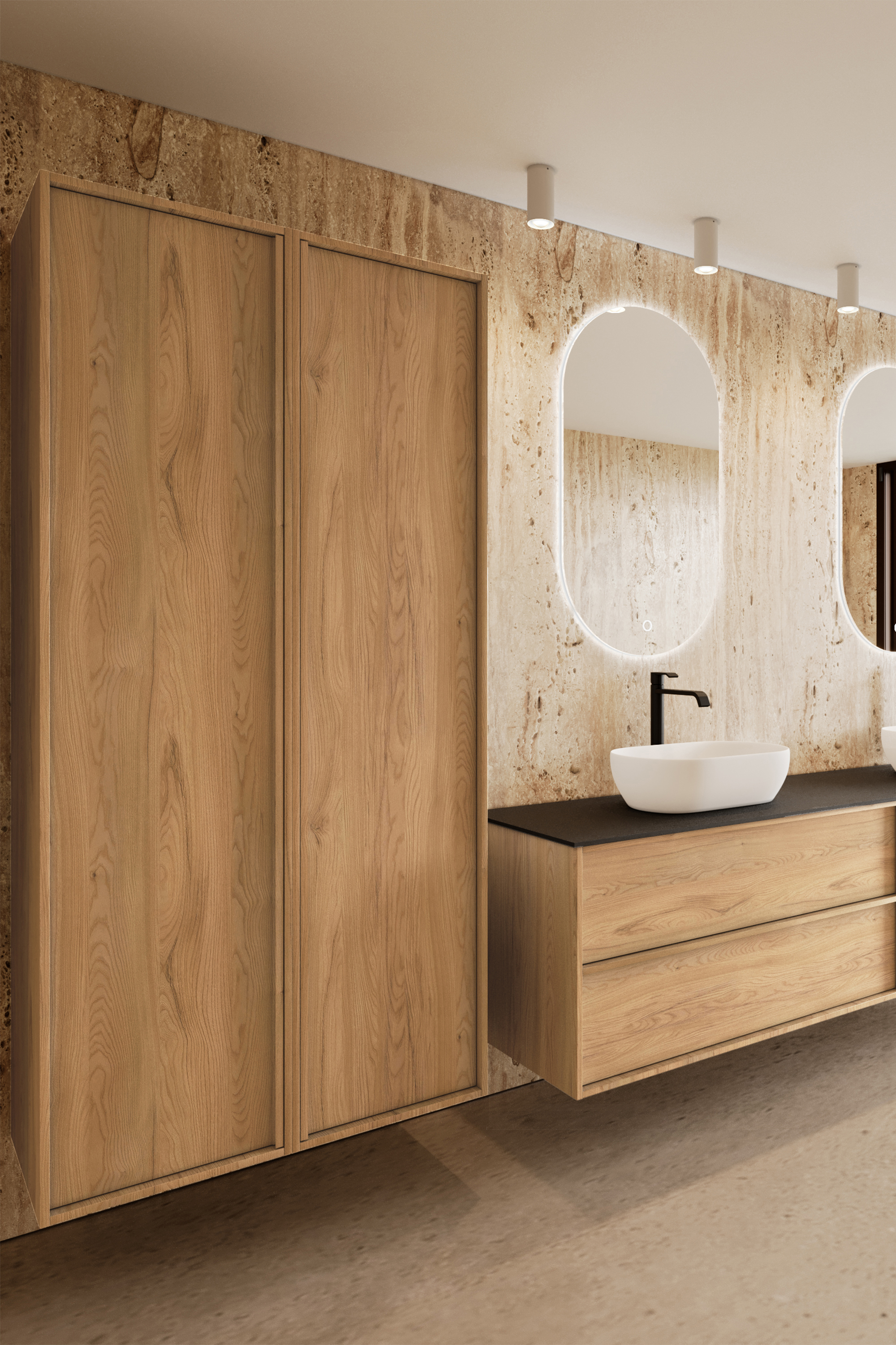 Casa -tuotesarjassa yhdistyvät pelkistetty muotoilu ja ylelliset materiaalit. Kosteudenkestävät kalusterungot on päällystetty aidolla tammella.