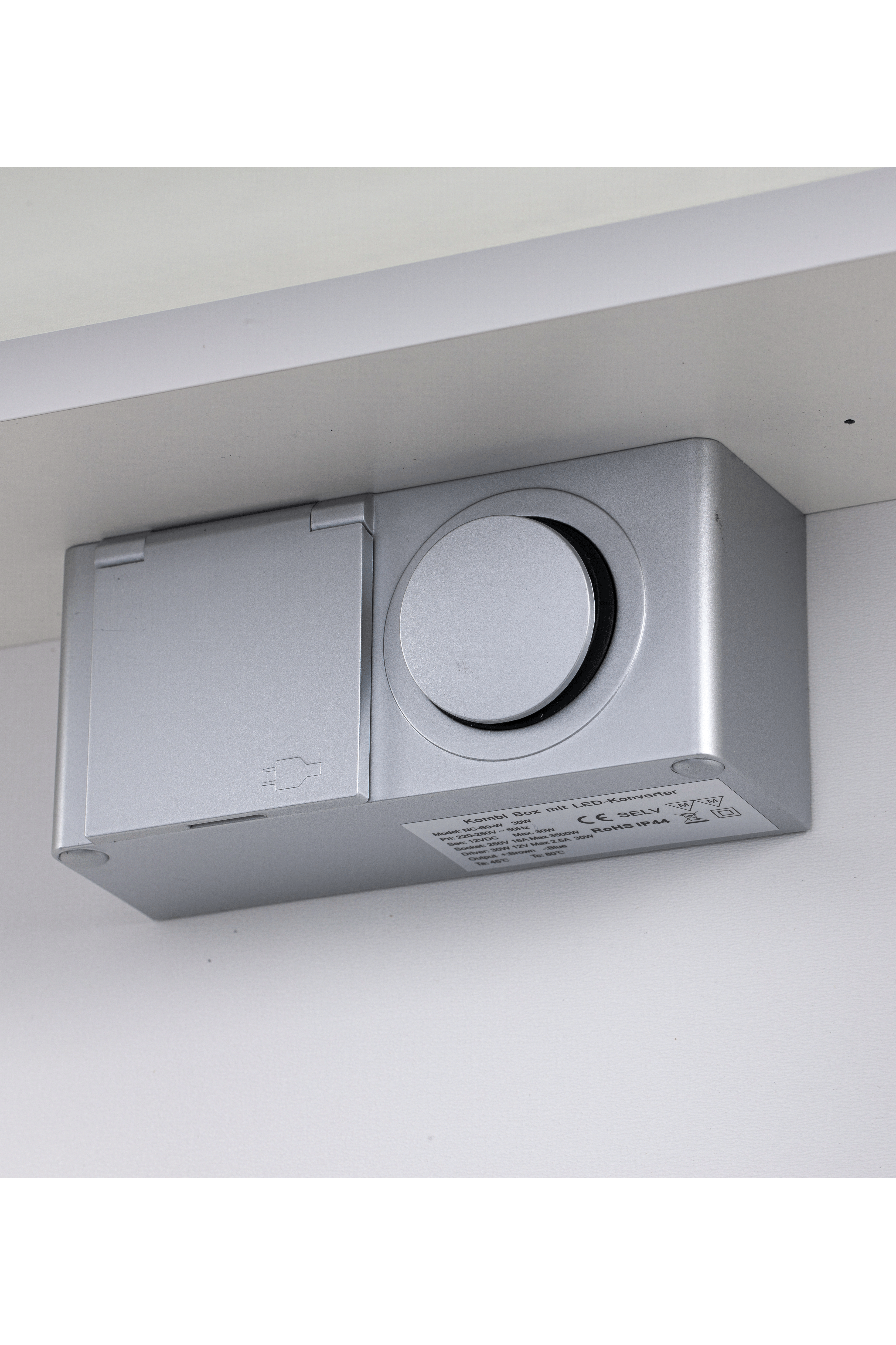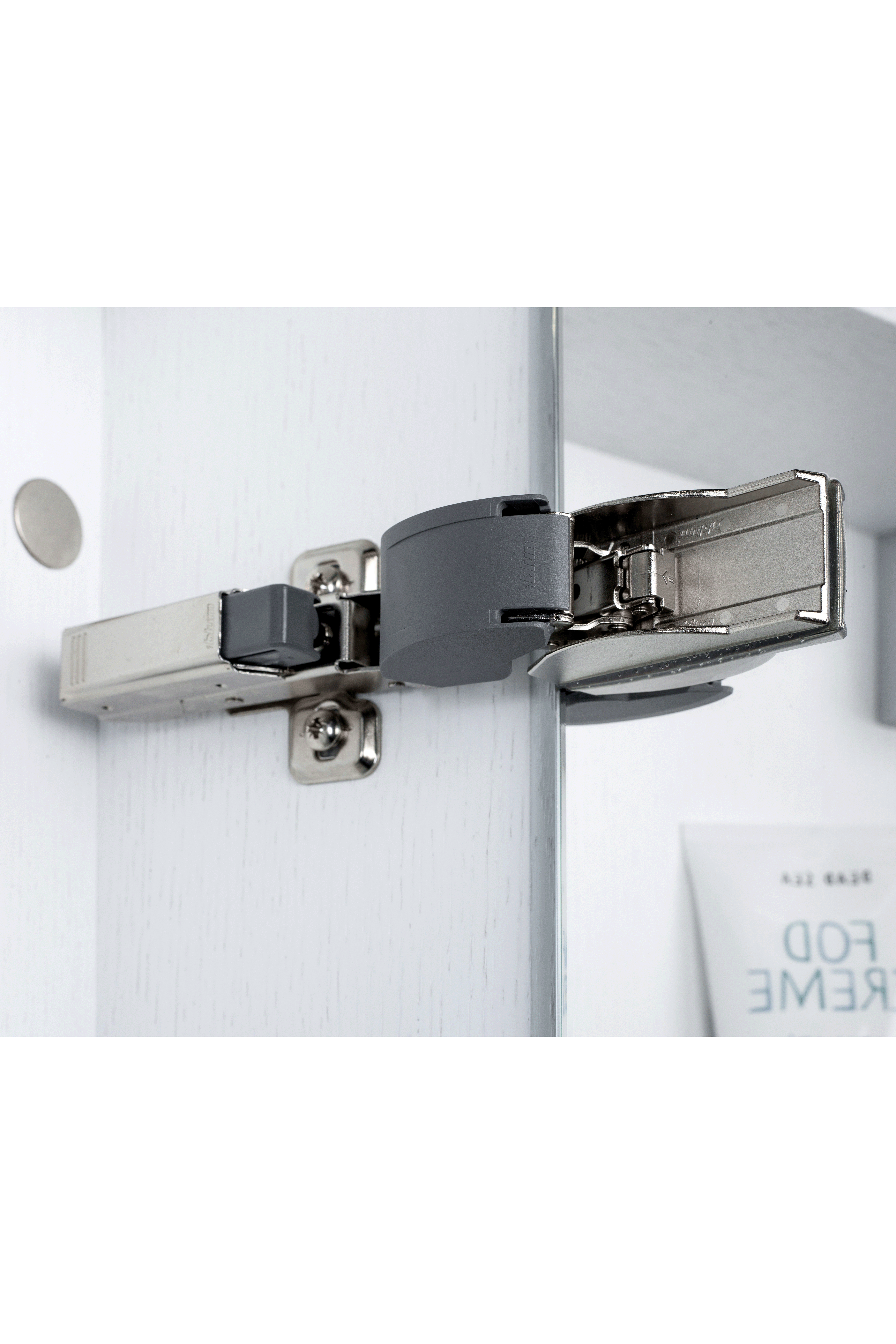 Mirror cabinet is installed on building wall with screws. Installation height can be freely chosen. Mirror cabinet electrical parts are IP44 compliant.